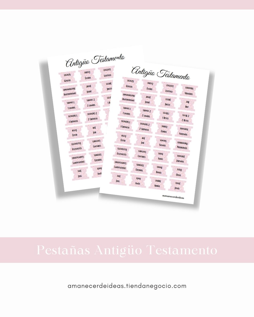 Dale un toque especial y elegante a tu Biblia con nuestras pestañas imprimibles para el Antiguo Testamento de la Biblia Reina Valera 1960. Con un hermoso diseño floral, estas pestañas te ayudarán a encontrar cada libro de manera rápida y ordenada, embelleciendo tu estudio bíblico.